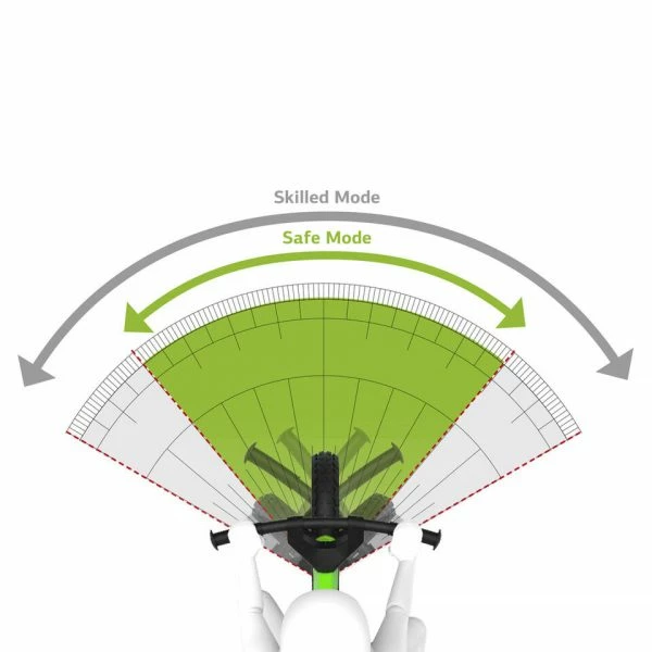 Un vélo d’équilibre est la meilleure préparation pour faire du vélo tout seul. Se tenir en équilibre sur deux roues et (apprendre à) diriger en même temps est tout un défi à un jeune âge. Pour éviter un « pliage » inattendu du guidon, nous avons équipé le BERG Biky d’un limiteur d’angle de braquage qui est réglable avec un mode pour les débutants et un mode avancé.
