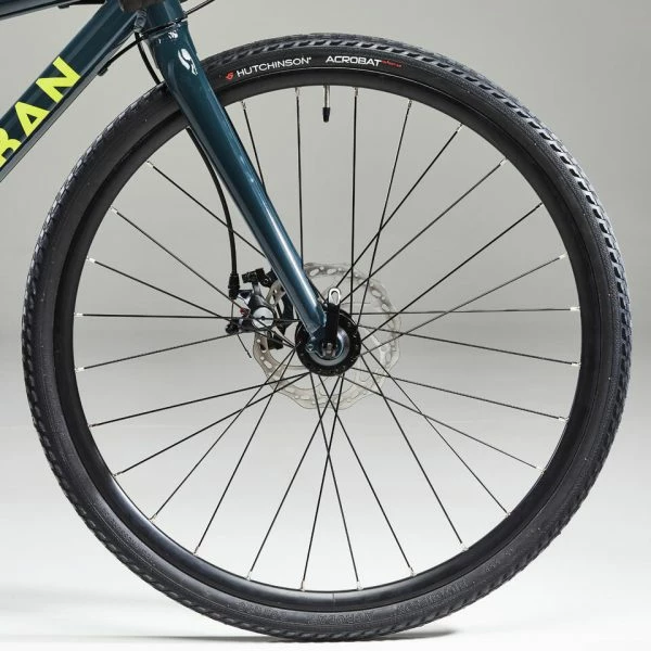 Les leviers de freins sont reliés à des disques mécaniques de 160 mm. Le frein à disque agit au niveau de l’axe de la roue pour délivrer un freinage puissant en toute condition (sec, mouillé, boue…), idéal pour une pratique Gravel.
