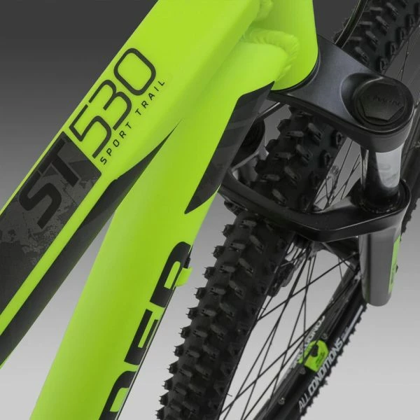 Passionnés de VTT, nous avons entièrement conçu et développé ce VTT ST 530 en France au BTWIN VILLAGE (Lille).