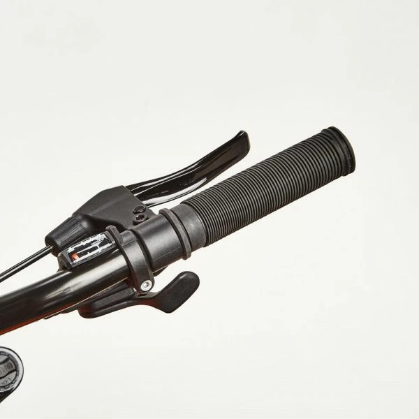 1 plateau de 34 dents et 7 vitesses (Roue libre Mega range en 14-34). Avec 1 seule manette au guidon, changer de vitesse devient un vrai jeu d’enfant. Le trigger permet de monter ou descendre les vitesses en un mouvement de doigt.