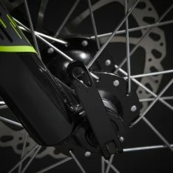 Ce VTT est équipé d’une sonnette, d’éclairages, de catadioptres de roues (réflecteurs) et de pédales plates.